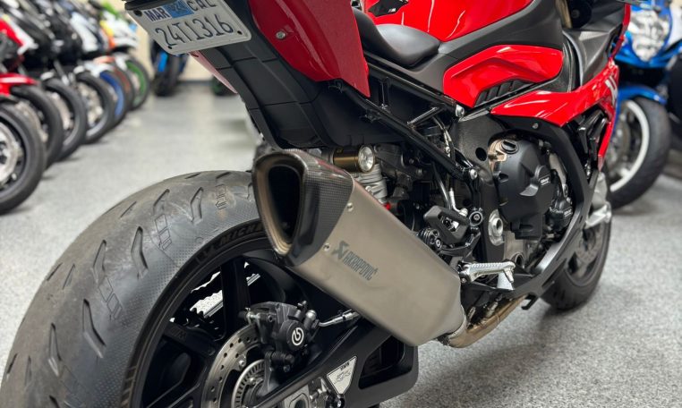 The 2019 BMW S1000RR Premium Edition with HP4 Forged Wheels is a high-performance sportbike that combines cutting-edge technology with stunning design. It features a powerful 999cc inline-four engine that delivers exhilarating performance, producing 205 horsepower and 83 lb-ft of torque. With its lightweight frame and advanced aerodynamics, the S1000RR offers precise handling and agility, making it a true thrill to ride on both the track and the street.