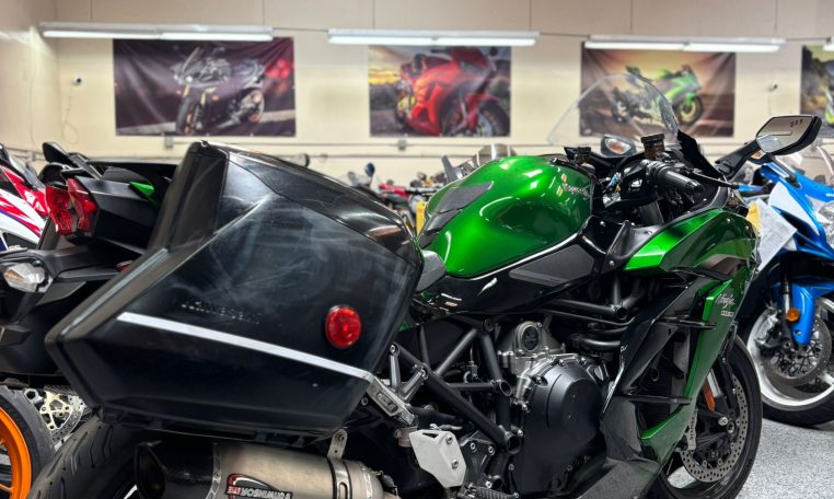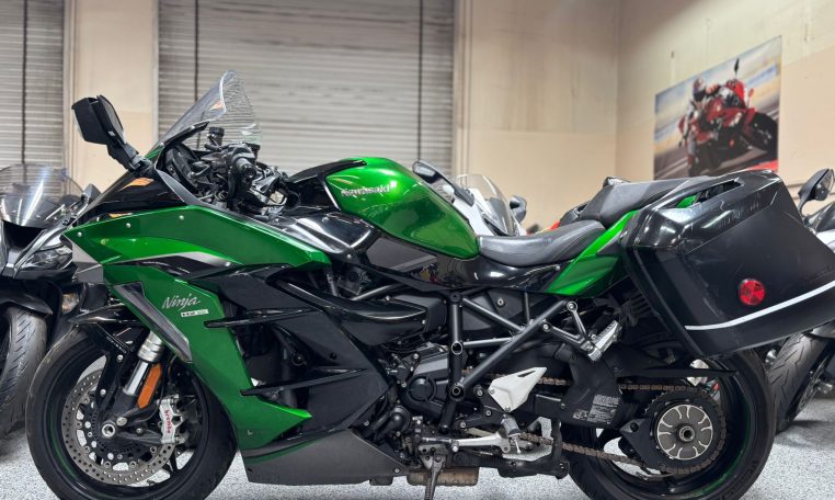 The 2021 Kawasaki Ninja H2 SX SE+ is a high end sport touring motorcycle that blends extreme performance with real world comfort. Powered by a 998cc supercharged inline four, it delivers the kind of acceleration and top end power the H2 name is known for, but in a package built to handle long rides, highway miles, and everyday usability more comfortably than a pure superbike. Kawasaki positioned it as a premium hypersport tourer, pairing aggressive styling and serious speed with better wind protection, a more relaxed riding setup, and touring friendly refinement.