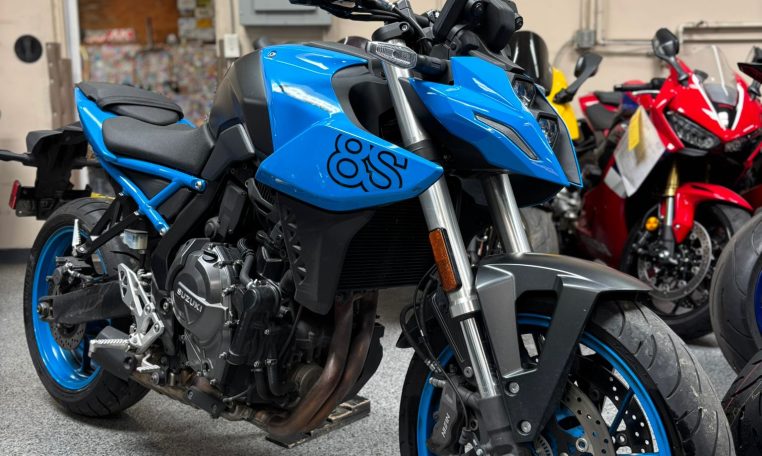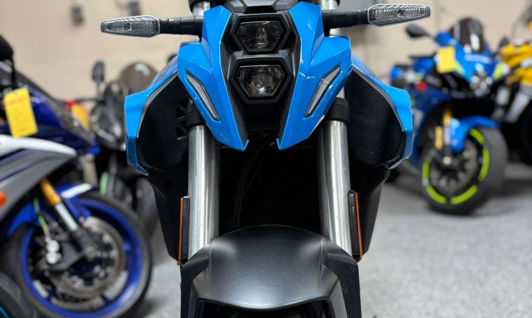 The 2023 Suzuki GSX-8S is a modern middleweight naked sportbike built to be fun, comfortable, and easy to ride every day. It uses Suzuki’s newer 776cc parallel-twin engine, giving it strong low-end and midrange torque, which makes it feel responsive around town, on canyon roads, and during highway riding. The bike has an aggressive streetfighter look with sharp bodywork, stacked LED headlights, and a compact upright riding position that makes it more comfortable than a full sportbike while still feeling sporty.